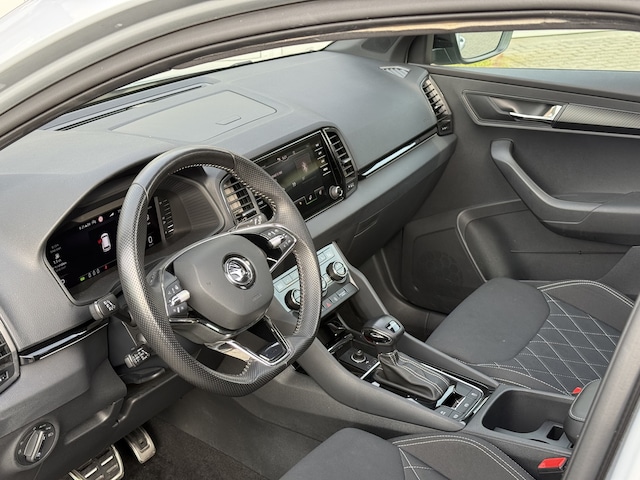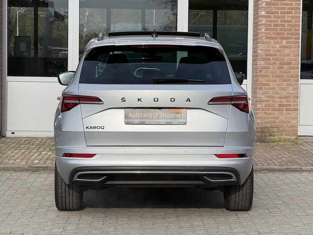 Laat u niets wijsmaken, deze ŠKODA Karoq biedt alles wat u van een auto verlangt. De krachtige benzinemotor van deze auto is gekoppeld aan een automatische transmissie. Winter... Eerst krabben, dan genieten van de stoelverwarming. Houdt u van frisse lucht en van licht dan zit u helemaal goed met het elektrisch bediende panoramadak. Waarom zou je alleen voorin behaaglijk mogen zitten? Daarom is er óók een verwarmde achterbank. Met matrix LED-verlichting rijdt u eigenlijk altijd met groot licht, dus maximaal zicht. Toch is verblinden er niet bij, want het systeem regelt de verlichting zo dat tegenliggers er geen last van hebben. Ook 19 inch lichtmetalen velgen, donker getint glas achter, in delen neerklapbare achterbank, LED-achterlichten en verstelbare lendensteunen zijn aan boord.