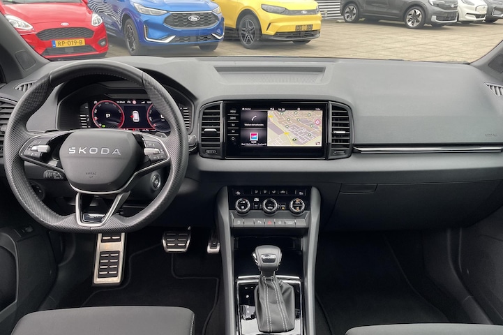 Alle ritinformatie en communicatie is gebundeld in één overzichtelijk digitale dashboard. De hoogwaardige achteruitrijcamera en het display met hoge resolutie zorgen dat helemaal niets je meer ontgaat van wat er achter de auto gebeurt. Mocht zich een probleem voordoen, dan krijg je via remote services op je smartphone te zien wat er precies aan de hand is, waar je ook bent. In deze Karoq vind jij niet alleen schakelaars op het stuur om het navigatiesysteem te bedienen en het audiosysteem met DAB-ontvangst, maar er is ook spraakbediening. Smartphone in het rood? Geen punt, de draadloze telefoonlader zorgt voor een volle accu. Ook automatische airconditioning, regensensor, cruise control, keyless entry, automatisch dimmende binnenspiegel en boordcomputer horen tot de voorzieningen op deze auto.