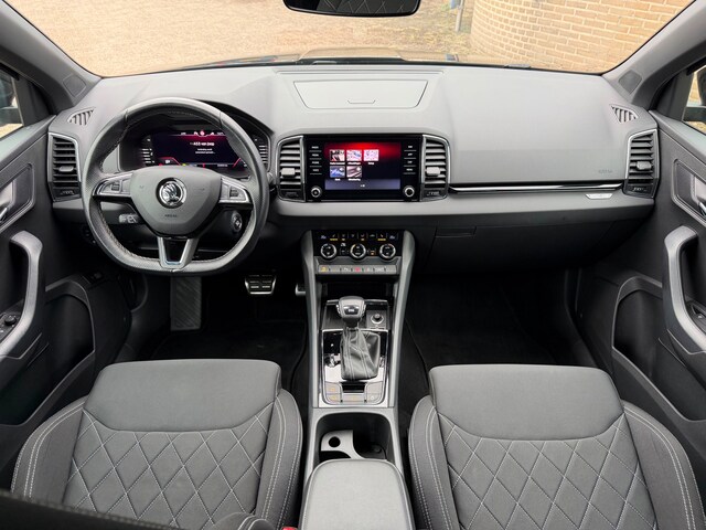 Bij het ontwerpen van de Skoda Karoq stonden uw comfort en uw veiligheid centraal. De aandrijving van deze Skoda wordt verzorgd door een viercilinder motor en een automatische transmissie. Op koude en donkere dagen zijn de verwarmbare voorstoelen een uitkomst. Licht, lucht, ruimte en gemak wordt verzorgd door het elektrisch bedienbare glazen panoramadak. De elektrische achterklep opent met een druk op de knop, zodat u gemakkelijk toegang heeft tot de bagageruimte. Natuurlijk behoren 17 inch lichtmetalen velgen, Full LED koplampen, zwarte hemelbekleding, extra getint glas, in delen neerklapbare achterbank en LED-achterlichten ook tot de uitrusting van deze complete auto.