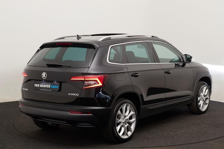 Zeer nette Skoda Karoq 1.5 TSI ACT Style. Deze auto is uitgevoerd in de kleur Black Magic Metallic, dit combineert zeer goed met de 19 inch lichtmetalen velgen. Daarbij is deze auto uitgevoerd met bijna alle mogelijke opties leverbaar op de Karoq.