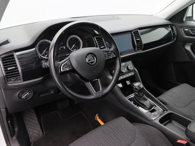 Het interieur is ruim, overzichtelijk en afgewerkt met duurzame materialen. De Kodiaq biedt bovendien een hoge zit, veel opbergruimte en een comfortabele rijpositie — ideaal voor gezinnen of wie graag royaal reist.