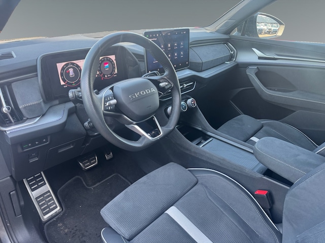 Met een auto als deze ŠKODA Kodiaq komt u absoluut goed voor de dag. De aandrijving van deze ŠKODA wordt verzorgd door een viercilinder benzinemotor en een automatische transmissie. Koude start? Niet met de verwarmbare voorstoelen! De sportstoelen geven het interieur van deze Kodiaq een super strakke en sportieve uitstraling. De elektrisch bedienbare achterklep opent met een druk op de knop. Op gure dagen is het ook achterin heerlijk bijkomen op de verwarmde achterbank. De matrix LED-verlichting is het allernieuwste op het gebied van autoverlichting. Altijd maximaal licht op de weg, zonder tegenliggers te hinderen! Sport, werk, boodschappen, gezinsuitje... Elk gebruiksdoel heeft andere voorwaarden. Van deze ŠKODA Kodiaq mag u net zoveel flexibiliteit verwachten. Vandaar de derde zitrij die u naar behoefte toevoegt of juist wegklapt. De uitmonstering van deze auto wordt gecompleteerd door onder meer 19 inch lichtmetalen velgen, geluidsisolerende ramen, dakspoiler, in delen neerklapbare achterbank, LED-achterlichten en verstelbare lendensteunen.