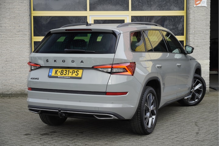 ŠKODA Kodiaq Sportline Business Automaat met de zeer luxe aanwezige opties als Lichtmetalen velgen 19" | Led dagrijverlichting | Led koplampen | Led achterlichten | Led mistlampen | Parkeersensoren | Keyless entry | Elektrische trekhaak | Achteruitrijcamera | App Connect | Navigatiesysteem | Virtual cockpit | Dashboard verlichting | Climate control | Cruise control | Elektrische bestuurderstoel met geheugen | Sportstoelen | Sportstuur | Verwarmde voorstoelen | Verwarmd stuurwiel | Zwarte hemel | Extra getint glas.