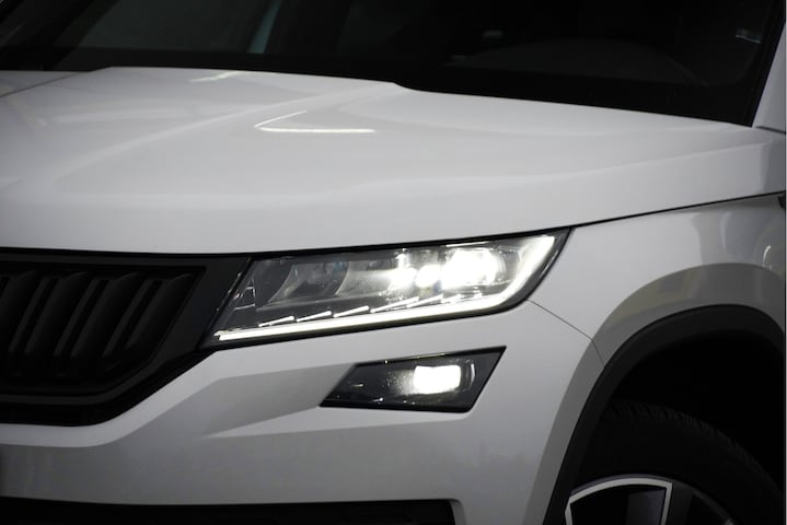 ŠKODA Kodiaq met de zeer luxe aanwezige opties als Lichtmetalen velgen | Led dagrijverlichting | Led koplampen | Led achterlichten | Led mistlampen | Parkeersensoren | Keyless entry | Elektrische trekhaak | Elektrische achterklep | Achteruitrijcamera | App-Connect | Dashboard verlichting | Navigatiesysteem | Virtual cockpit | Canton Audio Systeem | Climate control | Cruise control | Elektrische bestuurderstoel met geheugen | Sportstoelen | Sportline stuurwiel | Verwarmde voorstoelen | Zwarte hemel | Extra getint glas.