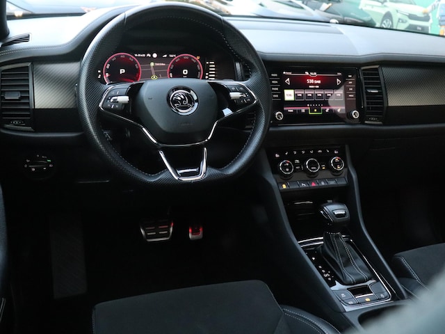 Het is een auto die er nog jaren tegenaan kan, deze Skoda Kodiaq die 86492 kilometer op de teller heeft staan. In deze auto vind je een benzinemotor en een automatische transmissie. Van een cabrio heb je alleen 's zomers plezier. Maar het elektrisch bediende glazen panorama dak van deze auto betekent het hele jaar genieten. Net zoals je elke dag het gemak ervaart van de elektrisch bedienbare achterklep. Hoe koud het buiten ook is, de stoelverwarming geeft je meteen een behaaglijk gevoel. De koplampen met matrix LED-verlichting zijn het hoogst haalbare op het gebied van autoverlichting. Bij de zeer complete uitrusting van deze auto behoren ook 20 inch lichtmetalen velgen, dakspoiler, donker getint glas achter, in delen neerklapbare achterbank, LED-achterlichten en verstelbare lendensteunen.