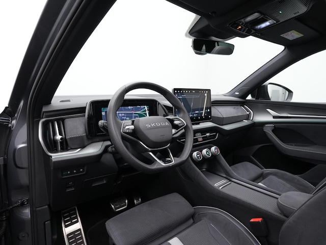 Deze Škoda Kodiaq Sportline combineert een krachtige uitstraling met moderne technologie en veel praktische veelzijdigheid. De Sportline-uitvoering geeft de auto een dynamisch karakter met sportieve accenten en een strak vormgegeven exterieur. De Graphite Grey metallic lak in combinatie met de 20 inch lichtmetalen velgen zorgt voor een krachtige, moderne uitstraling. Het panoramadak laat veel licht binnen en versterkt het ruimtelijke gevoel in het interieur, terwijl de wegklapbare trekhaak laat zien dat deze Kodiaq niet alleen stijlvol is, maar ook bijzonder praktisch in dagelijks gebruik. Het resultaat is een SUV die luxe, comfort en functionaliteit moeiteloos met elkaar verbindt.