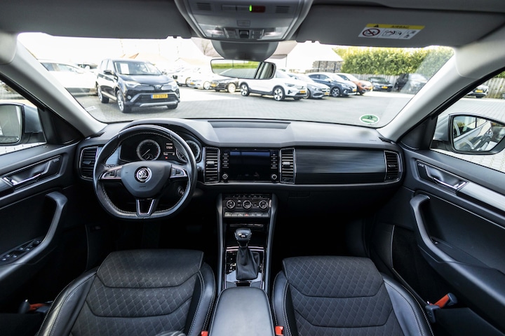 Zoals u mag verwachten van deze ŠKODA Kodiaq is hij uitgerust met een reeks aan actieve veiligheidssystemen. Verkeersborddetectie herkent tijdelijke en permanente verkeersborden langs en boven de weg. In een noodsituatie waarschuwt forward collision warning bij een dreigende aanrijding met een voorligger. Bij concentratieverlies van de bestuurder geeft vermoeidheidsherkenning automatisch een waarschuwingssignaal. Bovenop deze veiligheidsfeatures heeft deze ŠKODA bovendien autonoom remsysteem en bandenspanningcontrolesysteem.