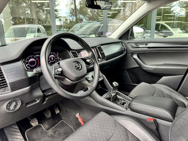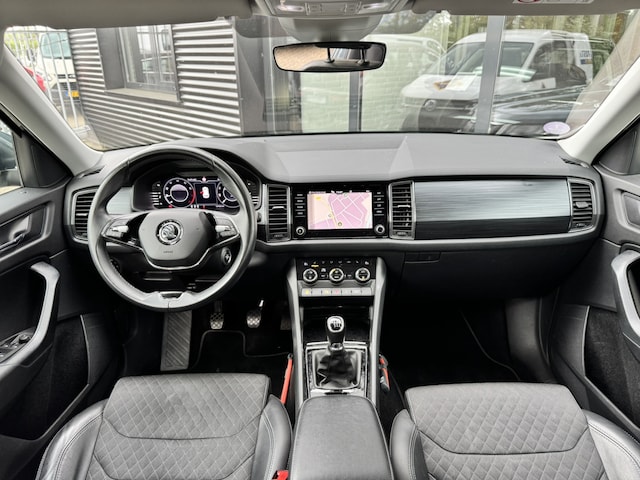 Met zijn kenmerkende hoge silhouet straalt deze SUV vastberadenheid uit, maar ook de zekerheid dat hij altijd zijn weg vindt, waar u ook naartoe rijdt. Met zijn benzinemotor en handgeschakelde zesversnellingsbak is deze ŠKODA een prettige auto om te rijden. Op koude en donkere dagen zijn de verwarmbare voorstoelen een uitkomst. De verlichting van de koplampen geeft het gevoel dat het altijd dag is. De slimme matrix LED-technologie past zich aan bij tegenliggers, zonder verlies van lichtkwaliteit. Tot de uitrusting van deze ŠKODA behoren ook halflederen bekleding, dakspoiler, in delen neerklapbare achterbank, LED-achterlichten en verstelbare lendensteunen. Over het digitale dashboard is goed nagedacht. Alle belangrijke functies binnen en buiten in één oogopslag. U ziet geen paaltje meer over het hoofd dankzij de achteruitrijcamera. Als u regelmatig met een caravan of aanhanger rijdt, is de elektrisch inklapbare trekhaak een uitkomst. Communiceren met uw auto? Dat gaat via remote services. Met uw smartphone maakt u waar dan ook contact om allerlei functies te checken of te activeren. Terwijl het full map navigatiesysteem de ideale route voor u uitstippelt, geniet u van de kwaliteit van het audiosysteem met DAB-ontvangst. De bediening is bovendien gemakkelijk via knoppen op het stuur of via spraak. En dan is deze auto ook nog eens voorzien van WIFI-hotspot, achteropkomend verkeer waarschuwing, electronic climate control, draadloos opladen, regensensor en cruise control.