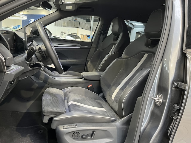 De Sportline uitvoering is de sportieve versie van de Kodiaq. Dat is aan de buitenkant meteen te zien aan de speciale wielen en zwarte accenten. De spiegelkappen, dakrails en grille zijn gelakt zwart. Het geeft een mooi contrast met de donkergrijze buitenkleur. In de grille zitten LED lampen die de auto in het donker extra uitstraling geven. Ook het interieur is bijzonder. De auto heeft zeer fraaie sportstoelen. De bestuurdersstoel is elektrisch verstelbaar en kent 3 geheugenstanden. Zo kunnen verschillende bestuurders hun favoriete positie opslaan. Het dashboard, deurpanelen en middenconsole zijn afgewerkt met alcantara. Het geeft een zeer luxe uitstraling. De hemelbekleding is heel donkergrijs. Beide voorstoelen èn de achterbank zijn elektrisch te verwarmen. Ook het stuurwiel is verwarmbaar. Zo is het in de winter vanaf de eerste meters comfortabel. Het is zelfs mogelijk om de auto op afstand voor te verwarmen of te koelen. De klimaatregeling is digitaal in te stellen. De passagiers op de achterbank hebben hiervoor een eigen paneel. Bovendien zijn zowel voor als achter 2 USB aansluitingen voor de elektronica. Voor is het zelfs mogelijk om 2 mobiele telefoons tegelijk draadloos op te laden.