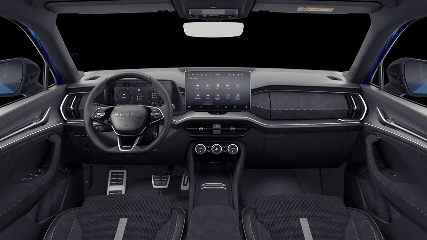 Daarnaast is deze Kodiaq standaard al uitgerust met bijvoorbeeld 19” lichtmetalen velgen, elektrisch verstelbare bestuurdersstoel, alarmsysteem, elektrisch te openen en sluiten achterklep, keyless entry met walk away locking functie, Full LED Matrix koplampen, Ful LED achterlichten met dynamische richtingaanwijzers, sportstoelen, meegespoten bumperdelen, zwarte spiegelkappen, zwarte grille, zwarte diffuser, sportstuur, getint glas achter, geluidswerend glas voor en achter, draadloze telefoonlader, digitaal dashboard, DAB, 13” multimediasysteem met navigatie en draadloos Android Auto & Apple Carplay, startknop, verwarmbare voorstoelen, climate control met 3 klimaatzones, parkeersensoren voor- en achter, achteruitrijcamera, adaptieve lane assist, adaptieve cruise control, licht- en regensensor, dodehoeksensoren, etc.