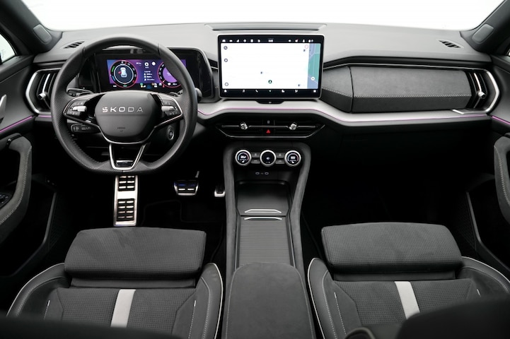 De Skoda Kodiaq 1.5 TSI PHEV Sportline is een hybride benzine SUV met een krachtig vermogen van 150 PK. Met slechts 14643 kilometer op de teller vanaf 2025, is deze grijze parel in uitstekende staat. De vijfdeurs auto is voorzien van metallic lak, wat zorgt voor een classy uitstraling.