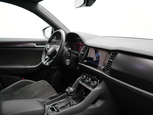 Uw nieuwe auto staat klaar voor vertrek. Stap gerust in, deze ŠKODA Kodiaq heeft 36402 kilometer gelopen. De krachtige benzinemotor van deze auto is gekoppeld aan een automatische transmissie. Behaaglijk onderweg zijn? Als bestuurder geniet u van de verwarmbare voorstoelen. Net als uw bijrijder! Zijwaartse g-krachten worden solide opgevangen door de sportstoelen. De matrix LED-verlichting is het allernieuwste op het gebied van autoverlichting. Altijd maximaal licht op de weg, zonder tegenliggers te hinderen! Bij de rijke uitrusting horen ook 19 inch lichtmetalen velgen, dakspoiler, donker getint glas achter, in delen neerklapbare achterbank, LED-achterlichten en verstelbare lendensteunen.
