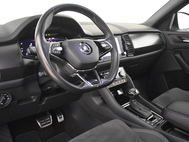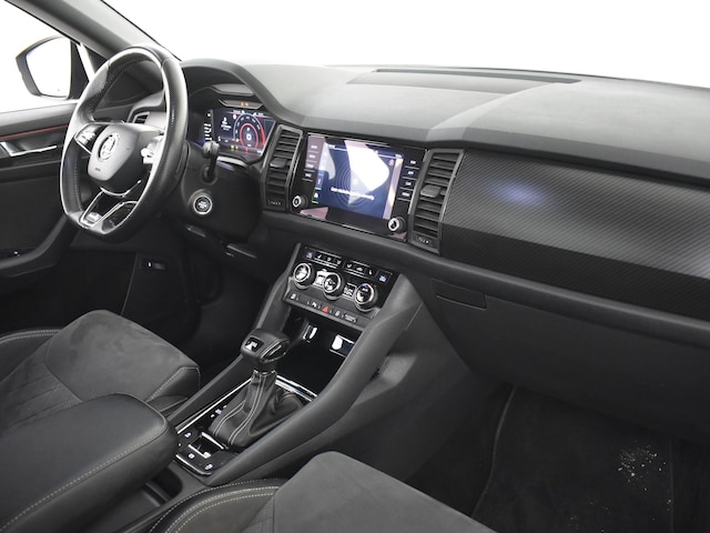 In het moderne verkeer hebt u achter het stuur van de Škoda Kodiaq altijd de controle. Deze auto uit 2021 heeft 136935 kilometer op de teller staan. Met zijn benzinemotor en automatische transmissie is dit een prima auto voor nog vele kilometers. Het comfort van de stoelverwarming geeft in koude dagen nét dat beetje extra. Laat de zon maar schijnen door het elektrisch bediende glazen panoramadak. Opvallend is de geavanceerde matrix LED-verlichting met daglichtkwaliteit. De koplampen dimmen automatisch het deel van de lichtstraal waar voor- of tegenliggers in rijden. De overige segmenten blijven aan en verlichten de weg maximaal. Dankzij de derde zitrij zit u nooit om ruimte verlegen. Er passen altijd een paar extra mensen in de auto. Bij de zeer complete uitrusting van deze auto behoren ook 19 inch lichtmetalen velgen, dakspoiler, extra getint glas, in delen neerklapbare achterbank, LED-achterlichten en verstelbare lendensteunen. Het systeem controleert alle belangrijke functies en geeft die perfect weer via het digitale dashboard. De achteruitrijcamera levert eersteklas parkeerservice. U weet precies hoeveel ruimte u nog heeft, in beeld en geluid. Met adaptive cruise control houdt de auto zelfstandig afstand tot uw voorligger. Een veiligheidsverhogende optie waarmee u comfortabel onderweg bent. Connected Services voegt nog meer comfort en veiligheid toe aan deze auto. Voor de veiligheid op de weg is het goed dat u uw ogen op de weg kunt houden en uw handen aan het stuur. Want het audiosysteem, met DAB-ontvangst, en het full map navigatiesysteem bedient u vanaf het stuurwiel en met spraakbediening. Extra opties op deze auto zijn: achteropkomend verkeer waarschuwing, electronic climate control, sportstuur met schakelpaddels, draadloos opladen, regensensor en automatisch dimmende buitenspiegels. Zoals u mag verwachten van deze Škoda Kodiaq is hij uitgerust met een reeks aan actieve veiligheidssystemen. Het forward collision warning-systeem is constant alert en detecteert via sensor de afstand tot voorliggers. Wordt die te klein, dan volgt een automatische waarschuwing. Vermoeidsheidsherkenning neemt tekenen van vermoeidheid waar bij de bestuurder. Het systeem voorkomt dat er daardoor ongelukken gebeuren. Dankzij veiligheidsvoorzieningen als frontale botsbescherming en bandenspanningcontrolesysteem, bent u steeds veilig onderweg. Wij kunnen ons goed voorstellen dat u deze Škoda wilt aanschaffen. Wacht daar dan niet mee en reserveer hem nu direct. Dan nemen wij zo snel mogelijk contact met u op om de aflevering te bespreken.