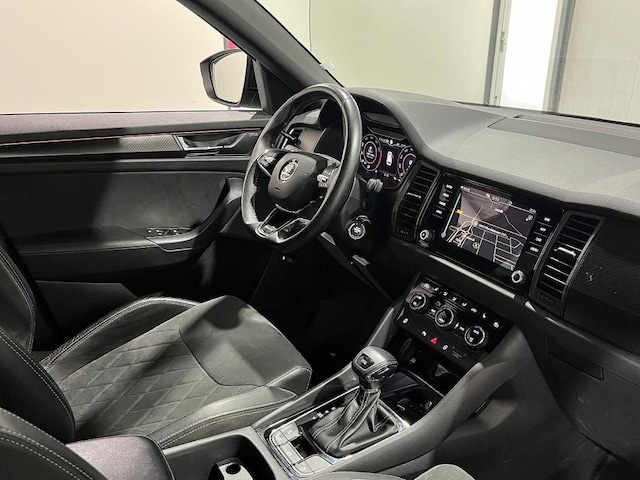 Combineer de functionaliteit van een gezinsauto met de prestaties van een sportwagen, en je krijgt deze sportieve Skoda Kodiaq. De aandrijving van deze Skoda wordt verzorgd door een viercilinder motor en een automatische transmissie. Ziet er goed uit, die sportstoelen. Maar waar het om gaat, is de solide zit onder alle omstandigheden. De achterklep opent automatisch met een druk op de knop. Handig als u met volle handen staat. Perfect zicht bij nacht en slecht weer? Dat leveren de koplampen met matrix LED-verlichting. Ook is de auto voorzien van: 18 inch lichtmetalen velgen, dakspoiler, extra getint glas, in delen neerklapbare achterbank, LED-achterlichten en verstelbare lendensteunen.