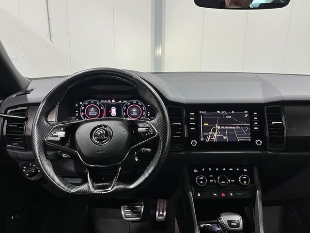 Voor het overzicht tijdens iedere rit is deze Skoda Kodiaq voorzien van een gemakkelijk afleesbaar digitaal dashboard. Overzichtelijk en veilig parkeren met de achteruitrijcamera. Overal en altijd. Adaptive cruise control is veilig en comfortabel. De snelheidsregelaar houdt automatisch afstand tot het voertuig dat voor u rijdt. Praat tegen deze auto en de auto doet wat u wilt dankzij de ingebouwde spraakbediening. Je ziet hem niet, maar hij is er wel: de elektrisch inklapbare trekhaak. De uitrusting van deze Skoda is met connected drive services, premium audiosysteem, navigatiesysteem, achteropkomend verkeer waarschuwing, electronic climate control en sportstuur met schakelpaddels behoorlijk compleet.