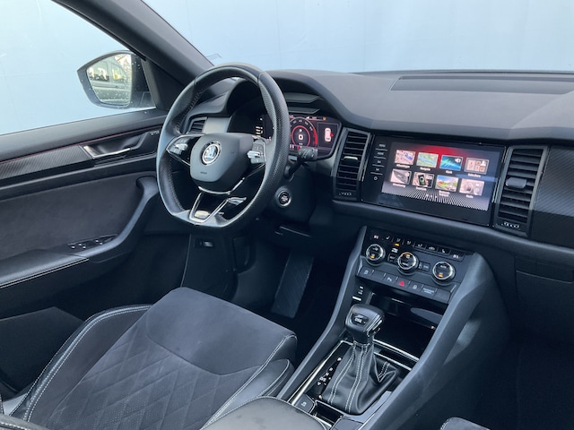 Deze ŠKODA Kodiaq maakt een voortreffelijke indruk. Hiermee mag je gezien worden in de stad én op de weg! De krachtige benzinemotor van deze auto is gekoppeld aan een automatische transmissie. De strakke sportstoelen hebben niet alleen de looks, maar bewijzen ook hun functie als u wat meer vraagt in de uitdagende bochten. Twee personen extra meenemen? Geen punt. Deze ŠKODA Kodiaq heeft een derde zitrij. Natuurlijk behoren 19 inch lichtmetalen velgen, LED koplampen, dakspoiler, donker getint glas achter, in delen neerklapbare achterbank en LED-achterlichten ook tot de uitrusting van deze complete auto.