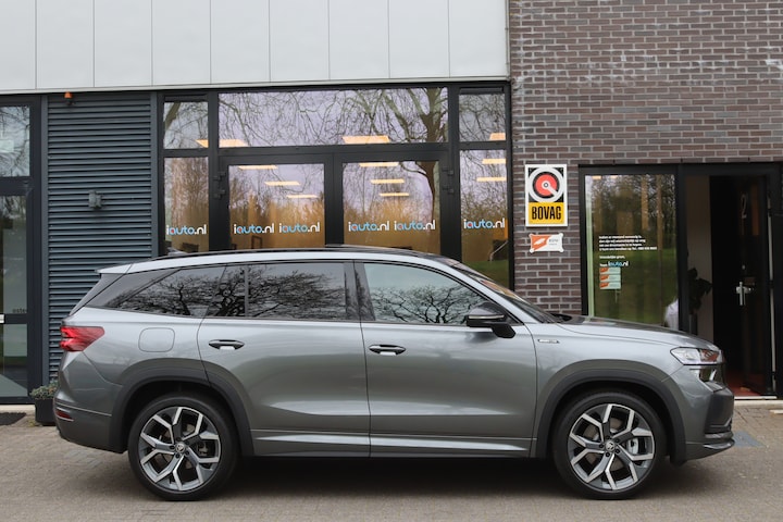 Op voorraad en direct leverbaar! De nieuwe Skoda Kodiaq iV Plug-in Hybride met de verlengde fabrieksgarantie voor 4 jaar of maximaal 60.000 kilometer. In de zeer luxe en sportieve Sportline Business uitvoering met het panoramadak en de originele wegklapbare trekhaak en zeer veel andere opties. Onder andere: Matrix LED verlichting met dynamische knipperlichten, elektrisch verstelbare bestuurdersstoel met memory, stoelverwarming, stuurverwarming, achterbank verwarming en verwarmd voorruit, achteruitrijcamera, originele lichtmetalen velgen 'Rila Aero' 20 inch, elektrische achterklep, Keyless entry/start, Ambienteverlichting interieur, App-Connect (Apple CarPlay/Android), origineel navigatiesysteem 10", adaptieve cruise control, alarmsysteem en Sunset (extra getint glas achter).