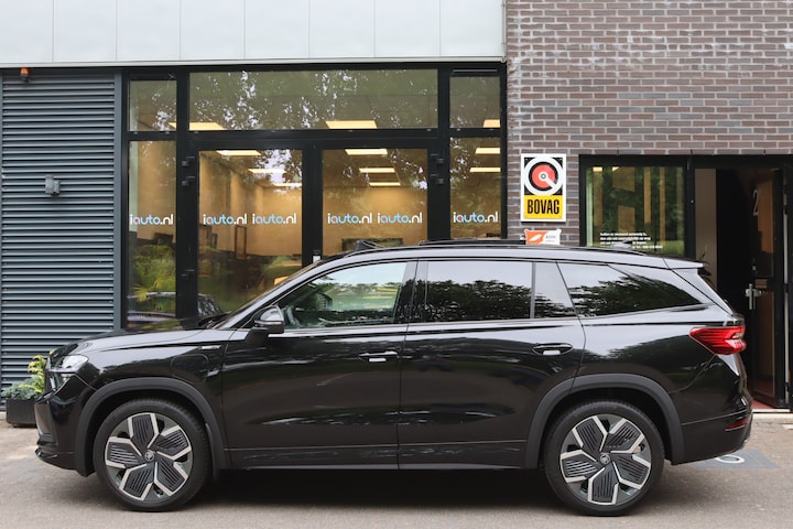 Op voorraad en direct leverbaar! De nieuwe Skoda Kodiaq iV Plug-in Hybride met de verlengde fabrieksgarantie voor 4 jaar of maximaal 60.000 kilometer. In de zeer luxe en sportieve Sportline Business uitvoering met het panoramadak en de originele wegklapbare trekhaak en zeer veel andere opties. Onder andere: Matrix LED verlichting met dynamische knipperlichten, elektrisch verstelbare bestuurdersstoel met memory, stoelverwarming, stuurverwarming, achterbank verwarming en verwarmd voorruit, achteruitrijcamera, originele lichtmetalen velgen 'Rila Aero' 20 inch, elektrische achterklep, Keyless entry/start, Ambienteverlichting interieur, App-Connect (Apple CarPlay/Android), origineel navigatiesysteem 10", adaptieve cruise control, alarmsysteem en Sunset (extra getint glas achter).