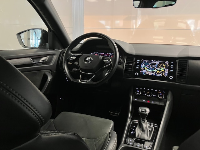 Deze stoere Škoda Kodiaq 1.5 TSI Sportline Business Automaat uit 2021 is er één, die eigenlijk alles heeft wat je zoekt in een moderne gezinsauto. Afkomstig uit de lease en met een bekende onderhoudshistorie. Klaar voor nog veel mooie kilometers.