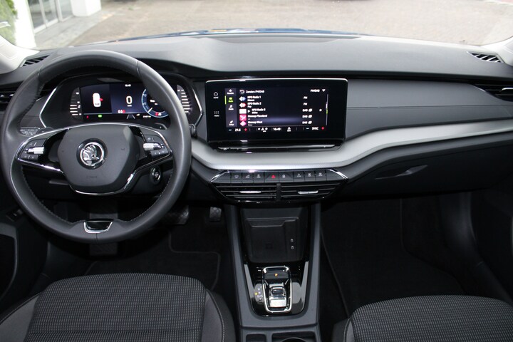 Het digitale dashboard ondersteunt je voortdurend met actuele, bruikbare informatie. Omdat je niet elke dag met een aanhanger of caravan op pad bent, is er de elektrisch inklapbare trekhaak. Terwijl het full map navigatiesysteem de ideale route voor jou uitstippelt, geniet jij van de kwaliteit van het audiosysteem met DAB-ontvangst. De bediening is bovendien gemakkelijk via knoppen op het stuur of via spraak. Gedoe met kabels en stekkers in de sigarettenaansteker is voorbij. De aanwezige draadloze oplaadmogelijkheid voor telefoons zorgt voor wireless recharging van je smartphone. De automatische airconditioning zorgt onder alle omstandigheden voor een prettige temperatuur. Je bent in deze ŠKODA ook voorzien van WIFI-hotspot, schakelpaddles aan het stuur, parkeersensoren voor en achter, regensensor, cruise control en keyless entry.