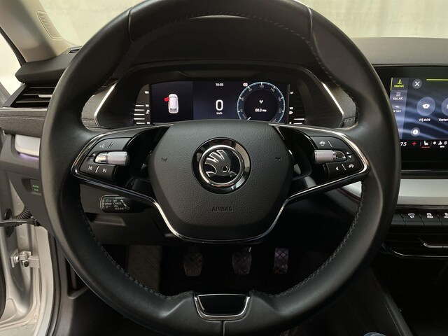 Met het digitale dashboard heb je essentiële info in beeld. Altijd, overal. Nooit meer parkeerschade dankzij de achteruitrijcamera. Adaptive cruise control is veilig en comfortabel. De snelheidsregelaar houdt automatisch afstand tot het voertuig dat voor je rijdt. Deze Skoda Octavia Combi is voorzien van remote services. Via je smartphone bedien je diverse functies ook op afstand en krijgt je informatie over de status van je auto. Je bedient het navigatiesysteem en het audiosysteem met DAB-radio via knoppen op het stuur, of zelfs met je stem. Zo kun jij steeds jouw aandacht gericht houden op de weg. Deze auto is voorzien van automatische airconditioning, draadloos opladen, regensensor, keyless entry, automatisch dimmende buitenspiegels en lederen stuur.