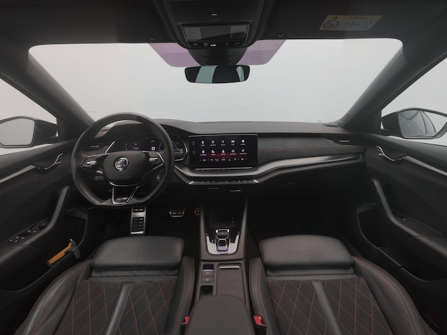 Pragmatisch en veilig als deze auto is, beschikt hij over diverse veiligheidssystemen. Dat de auto steeds meer taken van de bestuurder overneemt, merk je bijvoorbeeld aan het systeem voor verkeersbord-detectie in deze auto. Indien je onbedoeld de rijstrook lijkt te verlaten, reageert het Lane-keeping systeem meteen en corrigeert. In een noodsituatie waarschuwt forward collision warning bij een dreigende aanrijding met een voorligger. In deze Skoda vinden we verder een head-up display, dodehoekdetectie, hill hold functie, vermoeidheidsherkenning, autonoom remsysteem en bandenspanningcontrolesysteem.