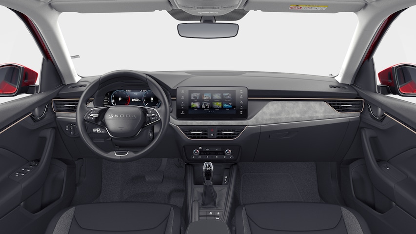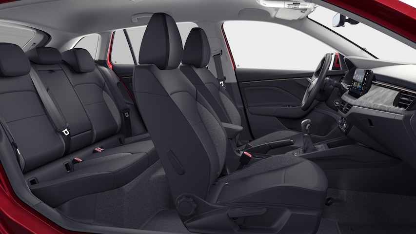 - Interieur "Lodge" met zwart/grijs stoffen/suedia bekleding