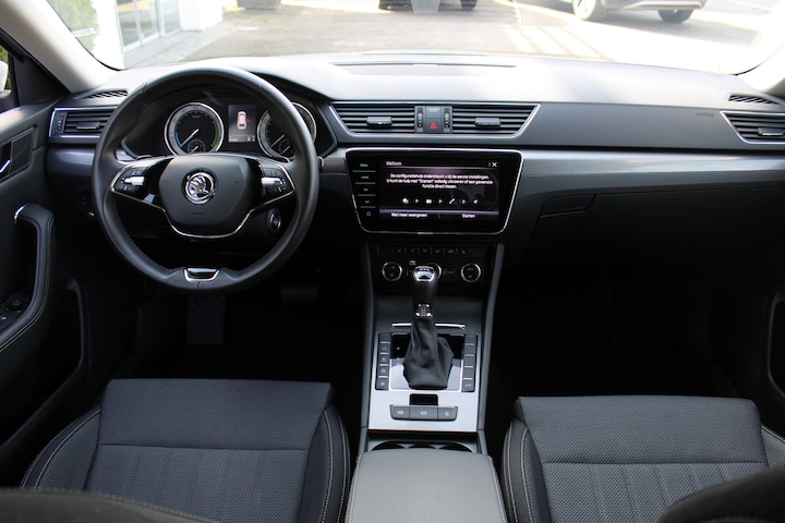 Gemakkelijk en veilig is de bediening het audio-installatiesysteem en het full map navigatiesysteem met knoppen op het stuur. De audio-kwaliteit is geweldig, dankzij de DAB-ontvangst. Telefoon onderweg aan de lader? Daar komt geen kabeltje aan te pas, want deze ŠKODA Superb Combi is voorzien van een draadloze oplaadmogelijkheid voor telefoons. De kans op een kop-staart botsing wordt sterk gereduceerd door het systeem van achteropkomend verkeer waarschuwing. Dankzij automatische airconditioning is het interieur behaaglijk warm of verfrissend koel. Superstrak parkeren wordt een eitje dankzij de parkeersensoren. Deze auto is voorzien van WIFI-hotspot, regensensor, cruise control, automatisch dimmende buitenspiegels, lederen stuur en lederen versnellingspook.