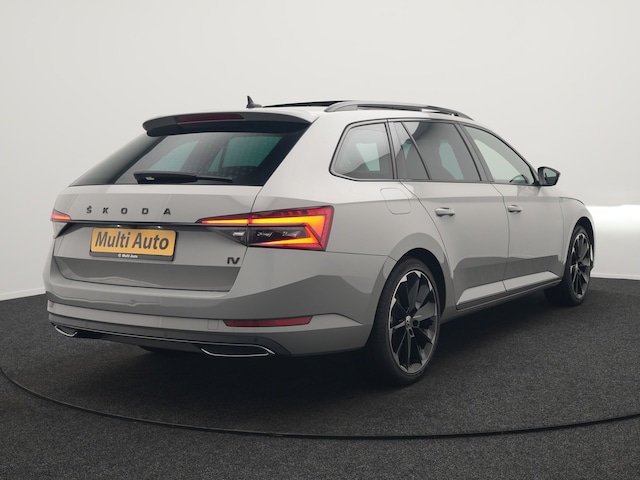 ŠKODA Superb Combi 1.4 TSI iV Sportline Plug In Hybrid 218pk Dealer O.H PHEV | Panodak | Crystal LED | Adaptive Cruise | Alcantara Sportstoelen Memory & Verwarmd | Camera | Apple Carplay | Sfeerverlichting | Navigatie | Virtual | DAB | 19" L.M |