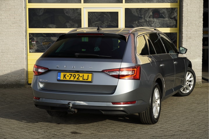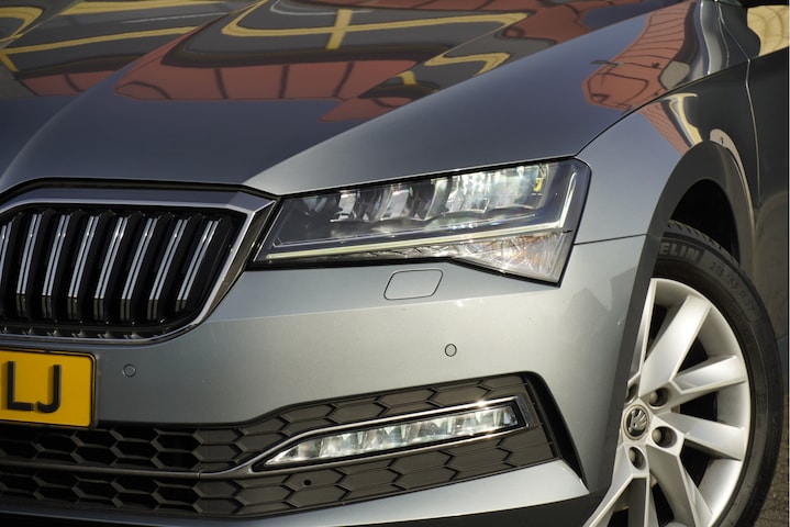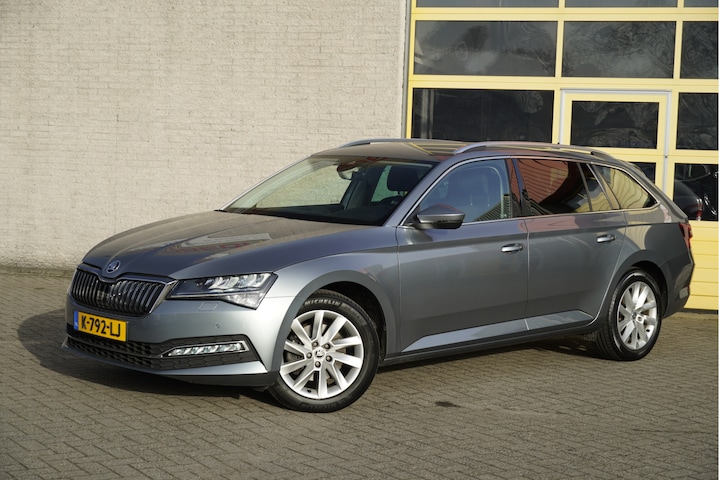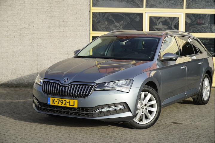 ŠKODA Superb Combi Automaat met de zeer luxe aanwezige opties als Lichtmetalen velgen | Led dagrijverlichting | Led koplampen | Led achterlichten | Parkeersensoren | Keyless entry | Trekhaak | App-Connect | Navigatiesysteem | Dashboard verlichting | Climate control | Cruise control | Elektrische bestuurderstoel met geheugen | Verwarmde voorstoelen | Extra getint glas.