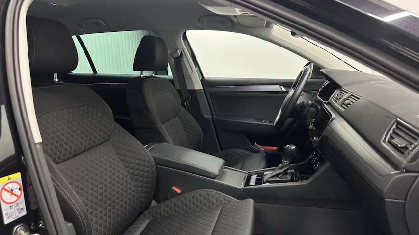 De achteruitrijcamera levert eersteklas parkeerservice. U weet precies hoeveel ruimte u nog heeft, in beeld en geluid. Kilometerstand? Oliepeil? Accuspanning? Allemaal te zien via de app. Overal. Altijd. Dankzij Connected Services. Met de knoppen op het stuur regelt u het audio-installatiesysteem en het navigatiesysteem met harde schijf, terwijl u uw blik op de weg gericht houdt. De audio-installatie biedt daarbij glasheldere ontvangst dankzij DAB-ontvangst. Nieuwe smartphones hebben geen snoeren meer nodig om op te laden. Daarom heeft deze Skoda Superb Combi een draadloze oplaadmogelijkheid voor telefoons waarmee u onderweg simpel en effectief voor een volle accu zorgt. Ook over uw schouder ziet u onderweg niet alles wat er aan de achterzijde gebeurt. Daarom heeft deze Skoda Superb Combi een achteropkomend verkeer waarschuwing. En deze auto heeft ook WIFI-hotspot, automatische airconditioning, schakelpaddles aan het stuur, regensensor, cruise control en keyless entry als standaard uitrusting.