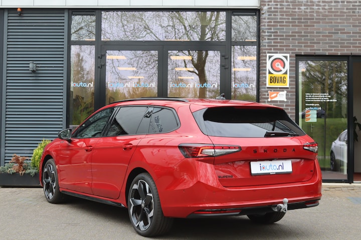 Het nieuwe model Skoda Superb combi met de krachtige en zuinige 1.5 TSI 150kW/204pk sterke Plug-in hybride motor. In de meest luxe Sportline Business uitvoering in de speciale lak Carmine Red metallic. Zeer luxe uitgevoerd met het elektrisch bedienbare panoramadak, de originele elektrisch wegklapbare trekhaak en werkelijk alle opties mogelijk. Het Dynamick Pack, Interieur pakket, Travel Assist Plus pakket en Winterpakket met onder andere: Matrix LED verlichting, adaptief onderstel (DCC), Virtual cockpit, stoelverwarming voor en achter, stuurverwarming, verwarmde voorruit, elektrisch bedienbare lederen sportstoelen met memory en massagefunctie, keyless entry / start, elektrische achterklep met voetbediening, parkeersensoren voor en achter met parkeerhulp en een originele achteruitrijcamera met 360 view, App-Connect (Apple CarPlay/Android), originele 19" lichtmetalen velgen "Torcular", dode hoek sensor, adaptieve cruise control, origineel alarmsysteem klasse 3, binnenspiegel automatisch dimmend, buitenspiegels automatisch dimmend en elektrisch inklapbaar, draadloos laden mobiele telefoon, Ambienteverlichting, extra getinte achterruiten en Head-up display. Deze Superb wordt geleverd inclusief de originele verlengde fabrieksgarantie voor 5 jaar of maximaal 100.000 kilometer.