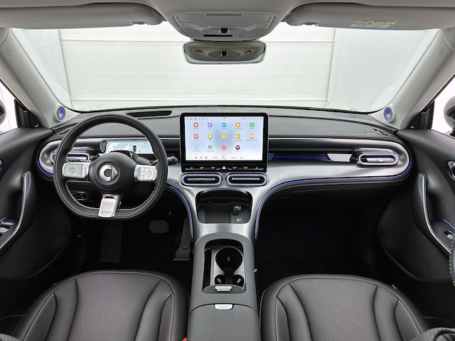 Hij biedt volop ruimte, deze Smart #1, en dankzij zijn elektrische aandrijving is er ook plenty vermogen voor een dynamische rijstijl. Je zult verrast zijn door de power van de elektromotor. En stil! Het gaat hier om een nieuwe auto, hij is nu direct leverbaar. De krachtige motor geeft deze Smart uitstekende prestaties. De verwarmbare voorstoelen benadrukken nog maar eens dat we hier te maken hebben met een regelrechte verwenauto voor bestuurder en bijrijder. Een praktische extra is de elektrisch bedienbare achterklep die opent en sluit met een druk op de knop. Het wijdse uitzicht door het glazen panoramadak maakt van elke rit een belevenis. Voorzien van matrix LED-verlichting. De auto dimt precies dat deel van de lichtstraal waar de voor- of tegenliggers in rijden. De overige segmenten blijven aan en verlichten de weg. In deze auto profiteer jij onder andere ook van: 19 inch lichtmetalen velgen, trailer assistent, donker getint glas achter, LED-achterlichten, verstelbare achterbank en snelheidsafhankelijke stuurbekrachtiging.