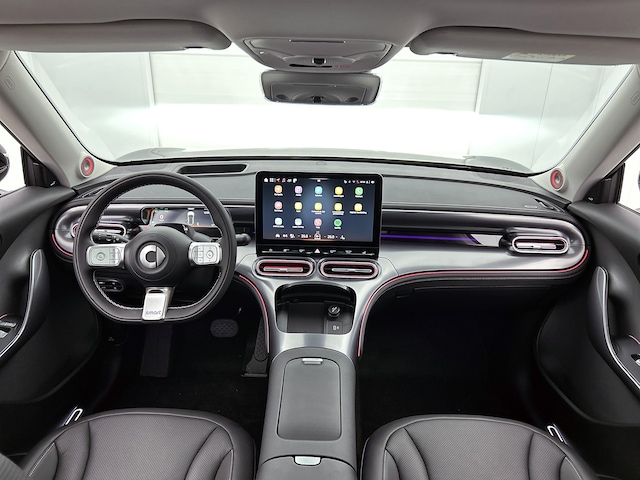 Deze Smart #1 is innovatie op zijn best. Hij is ontworpen als een unieke combinatie van rijplezier en zorg voor het milieu. CO2-uitstoot? Met de elektromotor rij je stil en schoon! Je kunt deze nieuwe auto nu direct verkrijgen, want hij is op voorraad. De krachtige motor geeft deze Smart uitstekende prestaties. De meegeleverde stoelverwarming zorgt in no time voor een behaaglijk gevoel als het buiten koud is. De achterklep opent automatisch met een druk op de knop. Handig als je met volle handen staat. Wat een heerlijk ruim gevoel en zoveel licht geeft dat glazen panoramadak! Daglicht bij nacht? De koplampen met matrix LED-verlichting zorgen ervoor. Tot de uitrusting behoren ook 19 inch lichtmetalen velgen, trailer assistent, donker getint glas achter, in delen neerklapbare achterbank, LED-achterlichten en verstelbare lendensteunen.