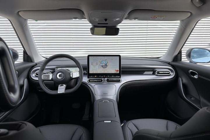 Het digitale dashboard zorgt voor een super functionele display van reisinformatie. Met de 360 graden camera, verzorgd door vier camera's, wordt rijden in drukke steden of het navigeren in nauwe ruimtes een koud kunstje. Als je de adaptive cruise control inschakelt, regelt de auto zelf de snelheid en de afstand tot de auto voor je. Rijden-stilstaan, rijden-stilstaan. Niks is irritanter en vermoeiender dan filerijden. Daar heeft deze smart #1 een oplossing voor: de file assistent, die met radarmeting permanent het tempo aanpast op de voorligger. Zelfs als die stopt. In het zeldzame geval van een storing weet je nog eerder dan de monteur wat er mankeert. Je smartphone met remote services geeft direct inzicht. Je bent in deze smart ook voorzien van dashboard met spraakbediening, full map navigatiesysteem, achteropkomend verkeer waarschuwing, kruisend verkeer detectie, electronic climate control en draadloos opladen.