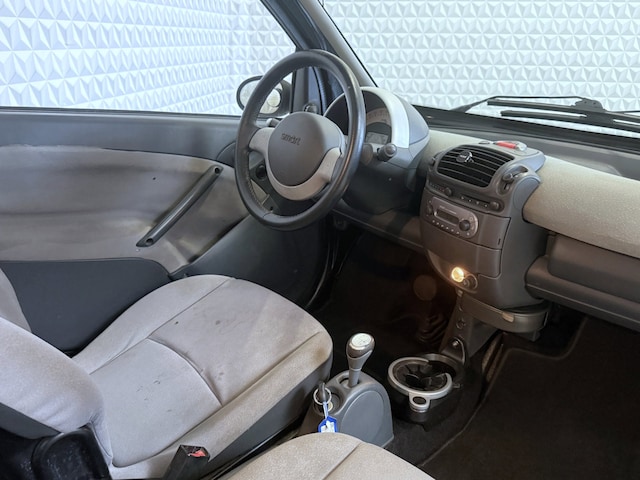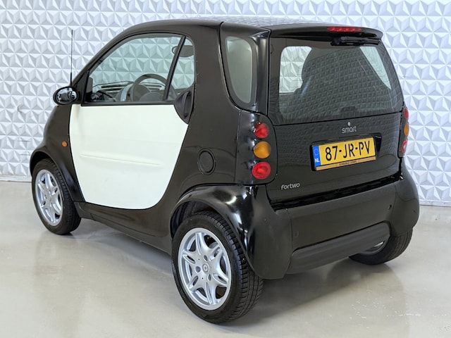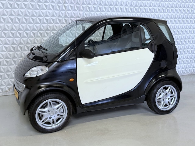 Hier staat een goed rijdende Smart ForTwo 0.6 automaat in een leuke kleursamenstelling. Voorzien van een glazen panoramadak, werkende radio, elektrische ramen en lichtmetalen velgen.