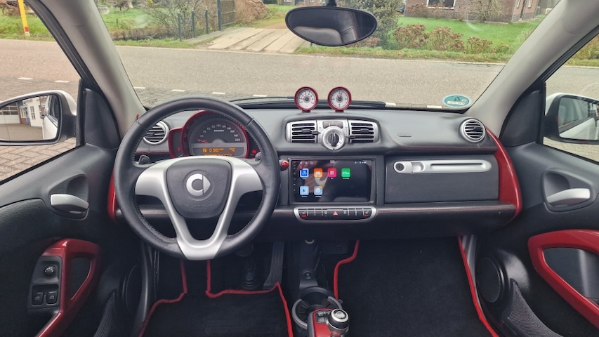 Prachtige Smart Cabrio 1.0 Automaat is in de kleur Parel White, Voorzien van: Lederen bekleding, Stoelverwarming, Automatische airco, Cabrio dak, Lichtmetalen velgen, Apple Carplay, en nog veel meer! U bent van harte welkom. De Brabus is gewrapt, kleur onder de wrap is grijs.