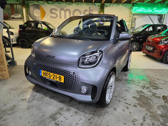 Te koop bij ELEKTRISCHESMART.NL in Lunteren: Zeer mooie matgrijze Cabrio EQ Comfort Plus - Navi, leder met stoelverwarming, stuurwielverwarming - parkeersensoren, Full Led - lichtsensor, regensensor, cruise control, airco, el. ramen/spiegels, keuze uit diverse velgen, JBL geluidsinstallatie, camera etc