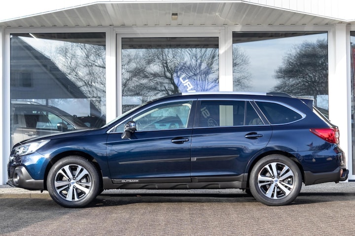 Nu bij ons op voorraad, van de eerste eigenaar afkomstige Subaru Outback 2.5 CVT Premium voorzien van Eyesight (veiligheidssysteem & adaptieve cruise control), detectie achteropkomend verkeer d.m.v. radars, Harman Kardon Premium geluidsinstallatie, 18 inch lichtmetalen velgen, afneembare trekhaak, lederen bekleding met stoelverwarming voor en achter, elektrisch bedienbare bestuurder en passagiersstoel, elektrisch bedienbaar schuif/-kantel dak, climate control, cruise control, metallic lak en meer. Ideale trekauto in combinatie met continu vierwielaandrijving en een maximaal trekgewicht van 2000kg!