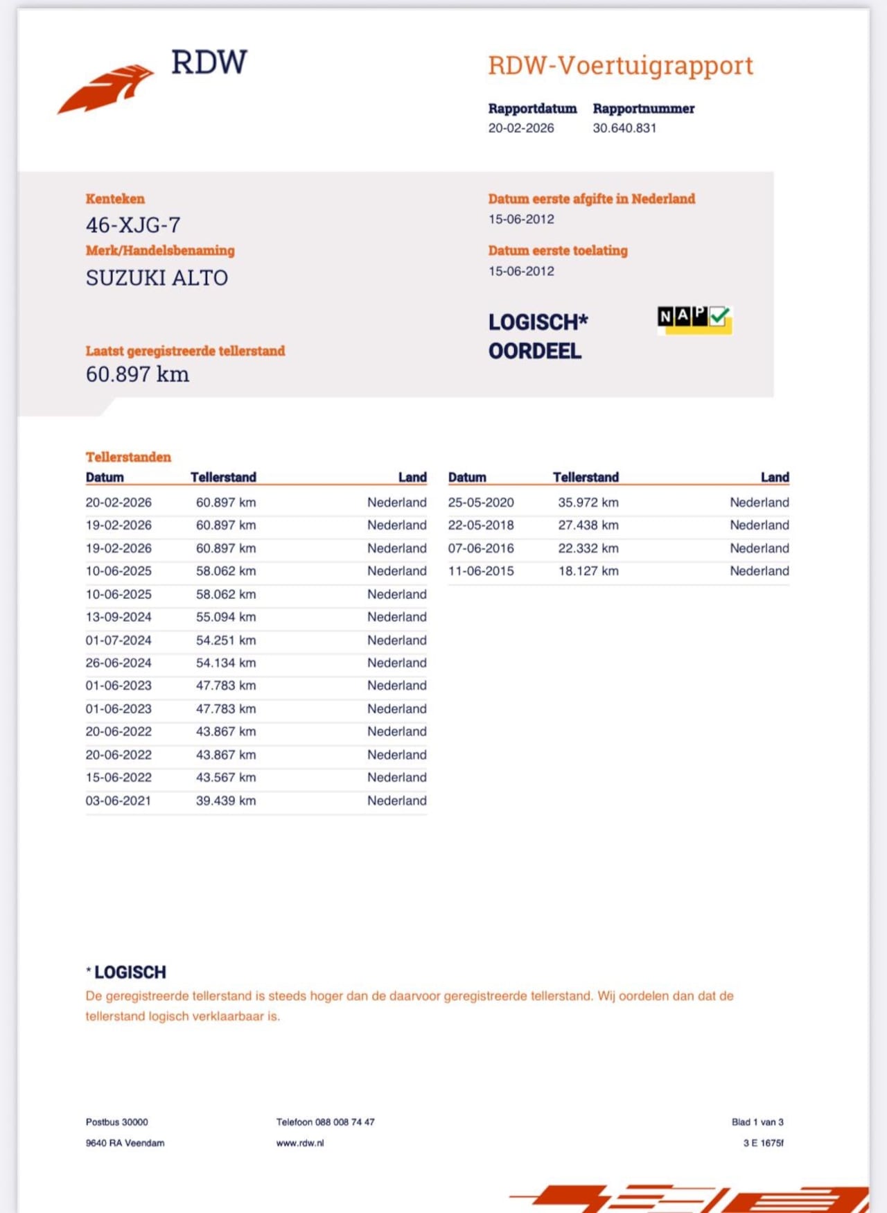 | Kilometerstand | 60.916 km |