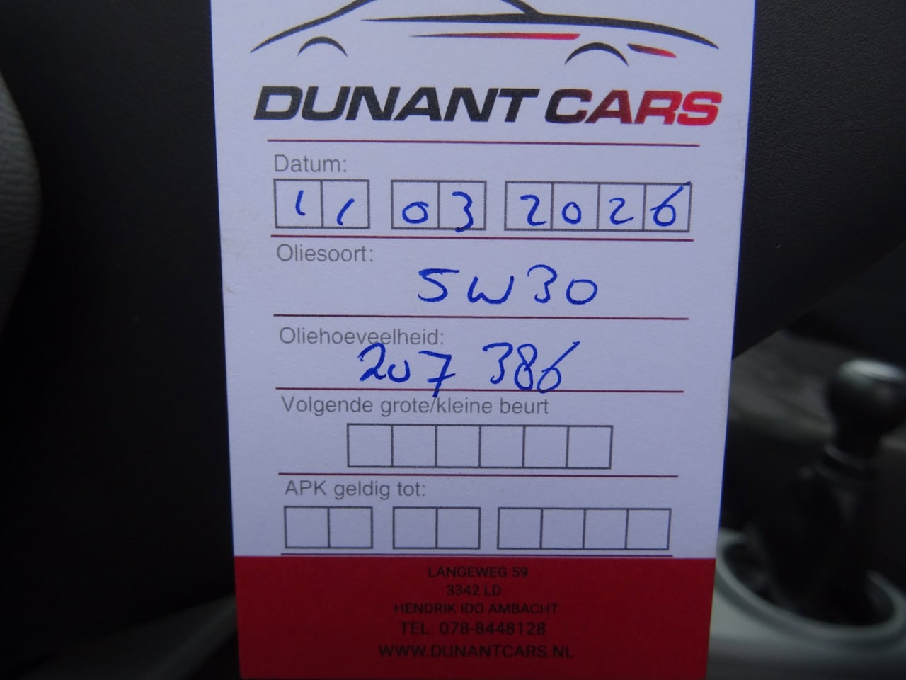 | APK | Bij aflevering |