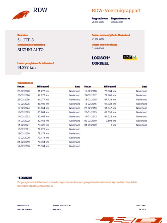 | Kilometerstand | 91.303 km |