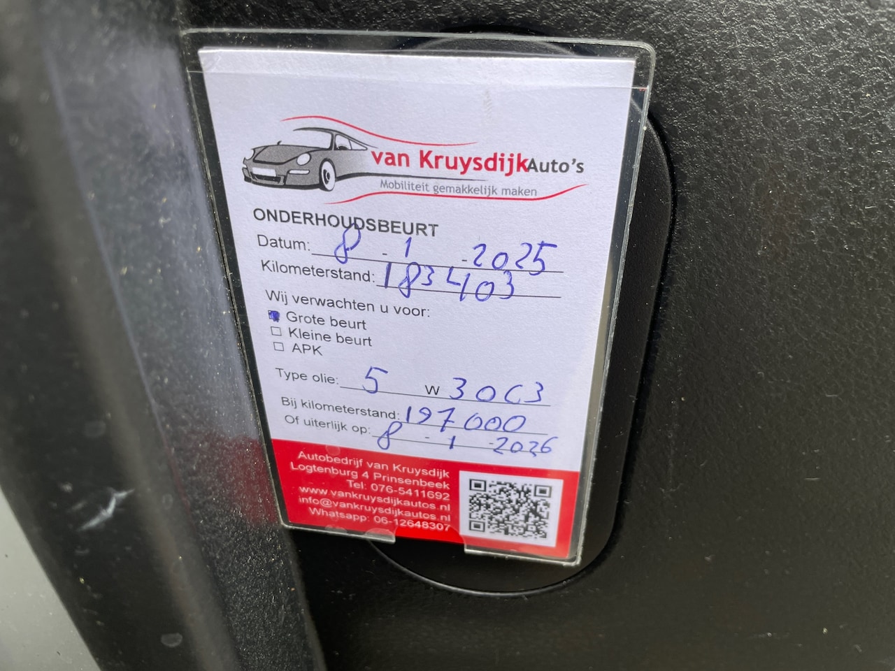 | APK | Bij aflevering |