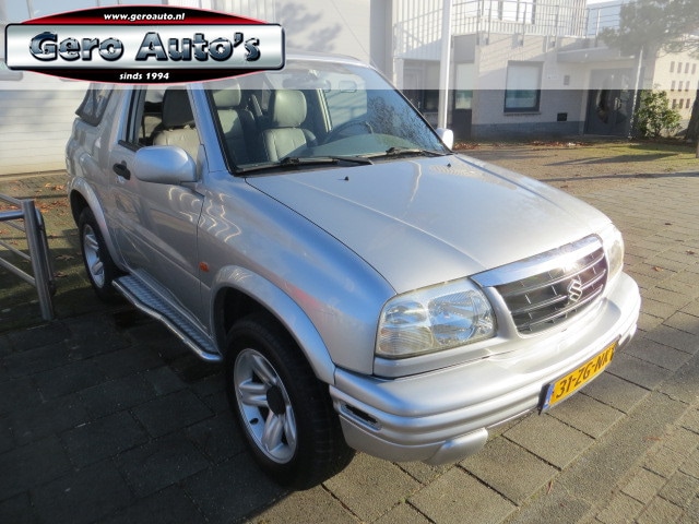 in opdracht van klant te verkopen ! Zodra de zon zich laat zien, kunt u heerlijk genieten achter het stuur van deze cabriolet. Hij zorgt voor een ontspannen rijervaring, deze Suzuki Grand Vitara. Het is een auto uit 2003. Hij heeft een benzinemotor en een handgeschakelde vijfversnellingsbak. Het met leer beklede interieur geeft deze auto een gedistingeerde uitstraling. De verwarmbare voorstoelen zijn een weldaad voor rug en schouders. In deze Suzuki profiteert u onder andere ook van: warmtewerend glas, neerklapbare achterbank, elektrisch verstelbare buitenspiegels en metallic lak.