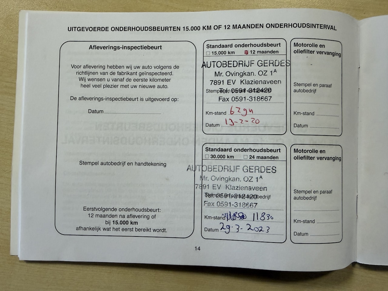 | APK | Bij aflevering |