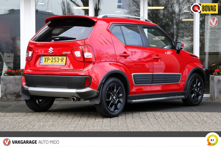 Daarnaast is deze Ignis sportief uitgevoerd in het Supreme Red met zwart dak, achterspoiler, fraaie lichtmetalen velgen, stootstrips en treeplanken.