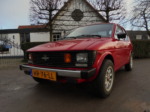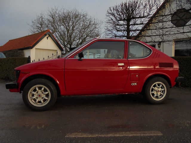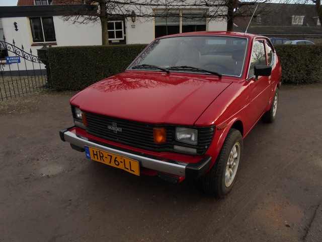 Zeer nette en harde Suzuki SC 100 GX van bouwjaar 1982 met 123.000 km. Auto heeft lange tijd stil gestaan, wel in een verwarmde ruimte gelukkig, heeft een beetje 'love and caring' nodig aan de techniek zoals remmerij nalopen en ik zou zelf de distributieriem vernieuwen, hiervan is niets bekend wanneer deze voor het laatst vervangen is. De Suzuki start, loopt en rijdt gewoon maar de boel even nalopen en weer langzaam op laten warmen kan geen kwaad natuurlijk. De carrosserie is keurig en 'hard' te noemen, van orgine is de GX zilver-metallic geweest en jaren geleden professioneel rood gespoten. Een paar eerlijke plekjes op haar body maar zeker niet rot, mede dankzij de Dinitrol behandeling destijds. Leuke tijd-correcte lichtmetalen velgjes! Interieur ook okay, alle metertjes werken, zelfs het tijdklokje en de originele radio!! Een unieke kans voor de liefhebber. Wij hebben voorlopig nog geen tijd om haar weer strijdlustig te maken daarom is deze tijdcapsule tijdelijk te koop voor EUR 7750,= as is. Bij interesse graag even ouderwets bellen met 06-21245527.