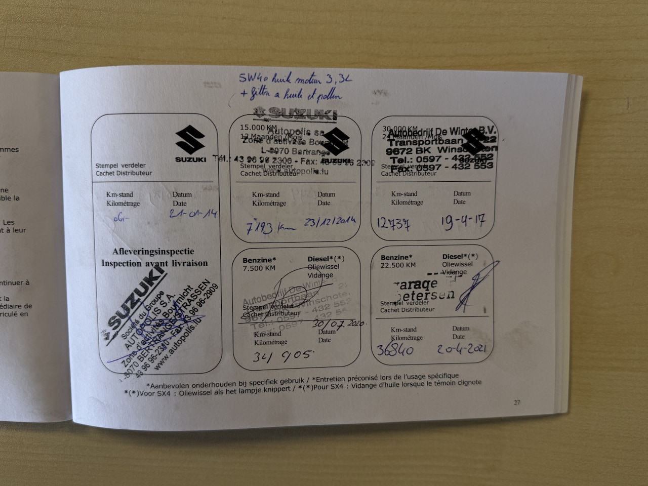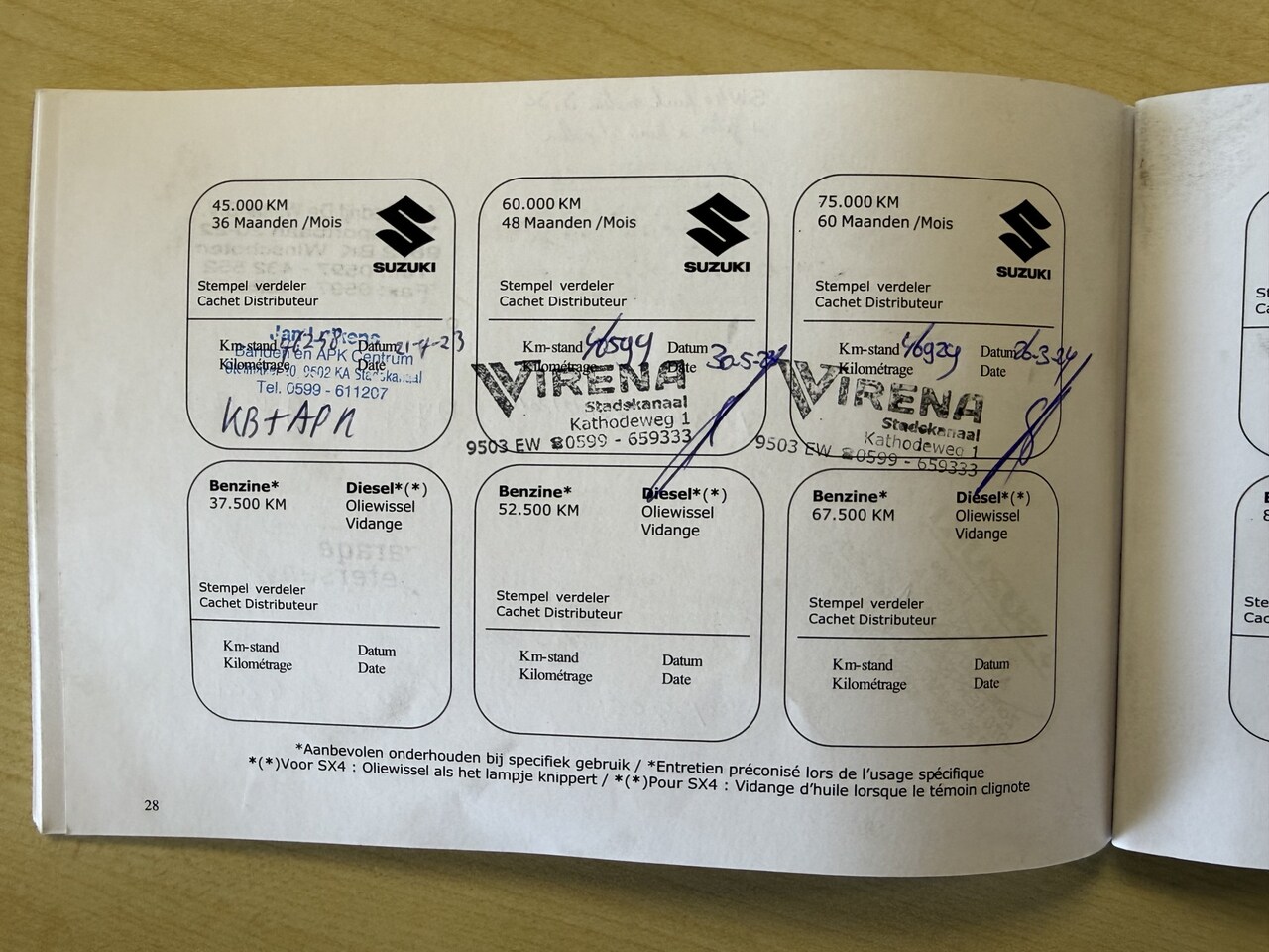 | APK | Bij aflevering |