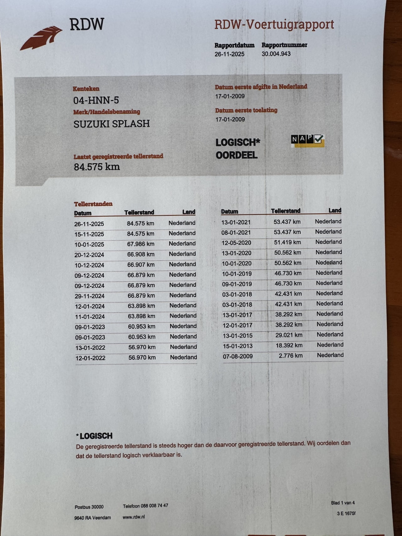 | Kilometerstand | 84.575 km |