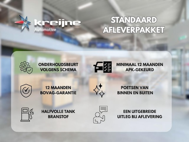 Dit afleverpakket bevat: BOVAG garantie (12 maanden); BOVAG 40-Puntencheck; BOVAG Afleverbeurt; Nieuwe APK; 24 uurs Pechhulp, Onderhoudsbeurt volgens fabrieksschema